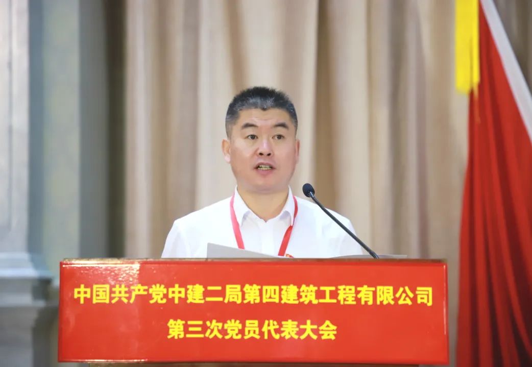 中建二局副總經(jīng)理孫占軍代表局黨委對大會的勝利召開表示熱烈祝賀,對四公司黨政領(lǐng)導(dǎo)班子帶領(lǐng)全體共產(chǎn)黨員和廣大干部職工與時俱進、開拓創(chuàng)新,取得的工作成績、獲得的諸多榮譽給予了充分肯定。同時他代表局黨委對四公司提出三點希望:一是提高政治站位,強化黨建引領(lǐng),全面構(gòu)建高質(zhì)量發(fā)展新格局,要激發(fā)黨組織“紅色動能”;要筑牢黨組織“紅色堡壘”;要激活黨組織“紅色細胞”。二是錨定目標任務(wù),全力攻堅克難,全面譜寫高質(zhì)量發(fā)展新篇章,要攻堅高端營銷,增強市場競爭能力;要攻堅履約創(chuàng)效,強化項目均質(zhì)發(fā)展;要攻堅商財盈利,全面優(yōu)化運營質(zhì)量。三是夯實基礎(chǔ)管理,提升治理效能,全面護航高質(zhì)量發(fā)展新征程,要持續(xù)強化機構(gòu)治理;要持續(xù)統(tǒng)籌發(fā)展與安全;要持續(xù)推進全面從嚴治黨。